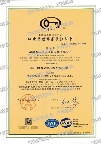环境管理体系认证证书