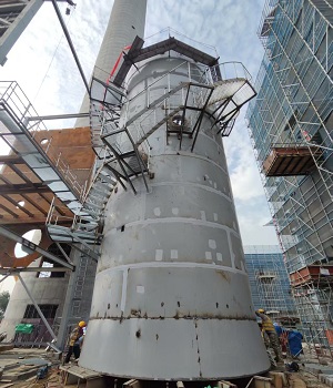 由我公司承建的无锡***热电联产扩建项目湿式脱硫除尘系统项目,正稳步推进。回顾项目6月份的施工进展,我公司项目部与施工人员紧密配合,顺利完成了2#脱硫塔顶部以下壁板拼装10圈倒装焊接、2#湿电除尘器钢构架安装完成,1#湿电除尘器钢架拼装中。