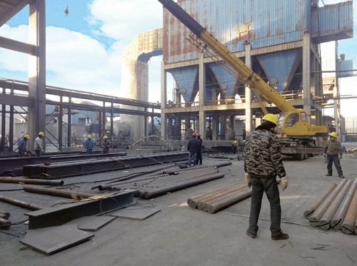该项目采用选择性催化还原法(SCR)脱硝工艺,锅炉烟气NOx初始浓度700mg/Nm³左右,设计指标为脱硝装置出口NOx排放浓度≤50 mg/Nm³、脱硝总效率不小于92.8%。工程合同工期仅100天,适逢春节假期,施工工期异常紧迫。自2016年1月7日签订合同起,公司立即展开具体设计,并组织项目部、施工队伍进入项目现场,安排钢材采购到货,顺利于1月15日正式开工建设。目前本工程脱硝钢架的非标构件已开始预制,反应器材料也已进场并预制,计划节后陆续开始吊装。