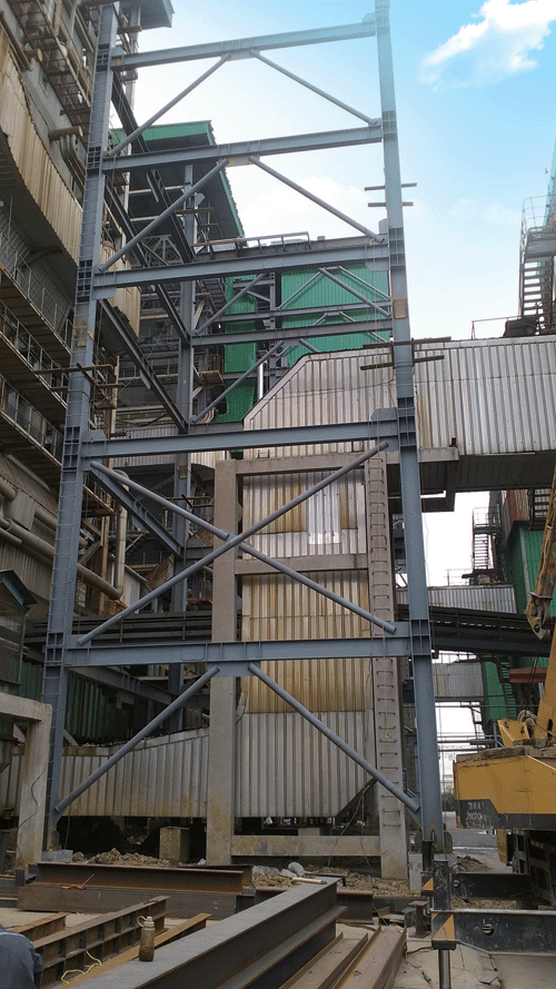 安徽金源热电有限公司1#锅炉烟气脱硝改造项目于2016年3月1日正式开工。在业主方、我公司项目部及施工队的共同努力下,目前进展顺利。其中,土建部分脱硝反应器钢架基础已施工完成,正进行配电室与设备基础施工;机务部分反应器钢架已吊装至24m,正进行反应器、烟道的制作与拼装。